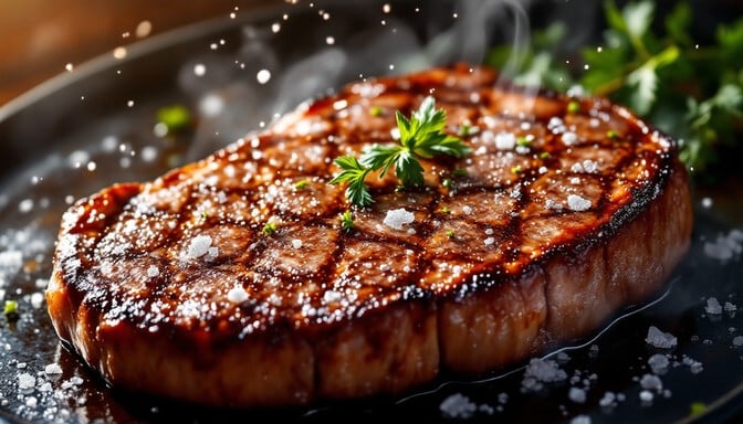 Sliced N.Y steak grilled to perfection with Mediterranean herbs